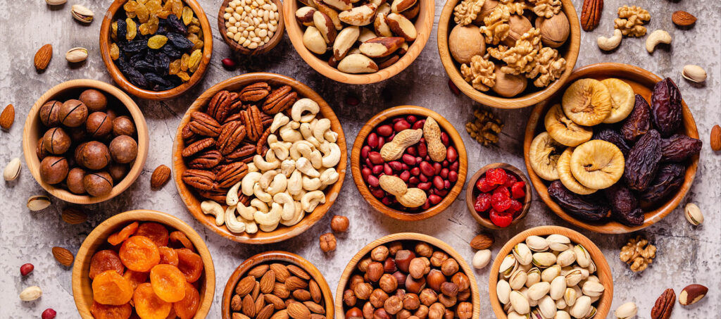 Für den kleinen Hunger zwischendurch bieten wir eine große Auswahl an Nüssen und Trockenfrüchten, die sowohl lecker als auch nährstoffreich sind: Mandeln, Walnüsse und Cashews – Als Snack oder Zutat für viele Rezepte. Getrocknete Aprikosen, Feigen und Datteln – Natürlich süß und voller Vitamine.